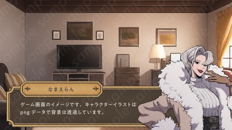 差分は表情あり・なし・黒の3種あり、アドベンチャー・ミステリー・ホラー系のゲームに特に合う雰囲気のイラストになっています。
