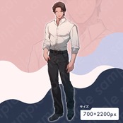 白シャツ・黒パンツを履いており、サラリーマン・上司・警察・教師など様々な現代作品に使用できるようなキャラクターになっています。