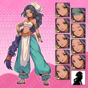 褐色肌で民族衣装を着ているキャラクターで、ヒロイン・踊り子・冒険者・占い師などとして使用できるような立ち絵素材となっています。